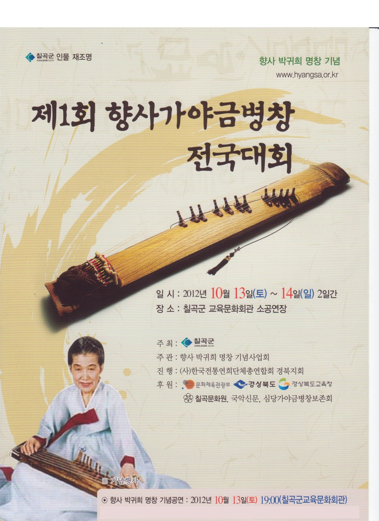 出演演目 伽倻琴散調、パンソリ並唱、伽倻琴演奏と舞い